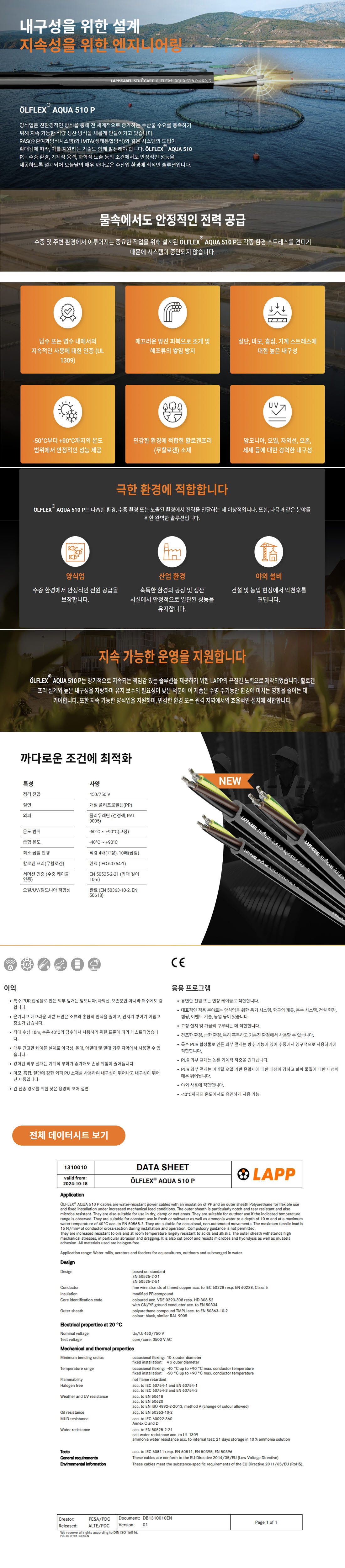 ¼öÁßÄÉÀ̺í AQUA 510 P (LAPP OLFLEX Á¦Ç°)