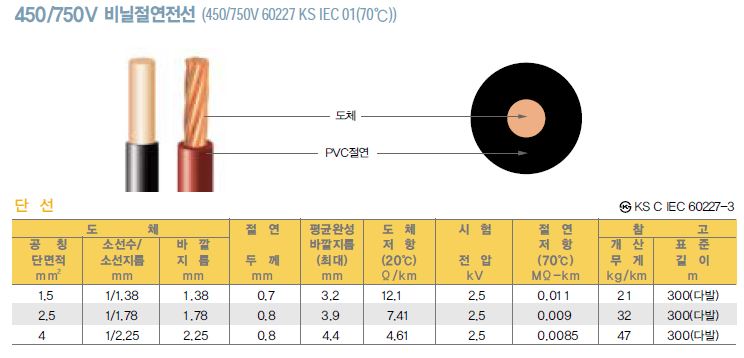 450/750V KIV (70¡É) (Àü±â±â±â¿ë Àý¿¬ Àü¼±)